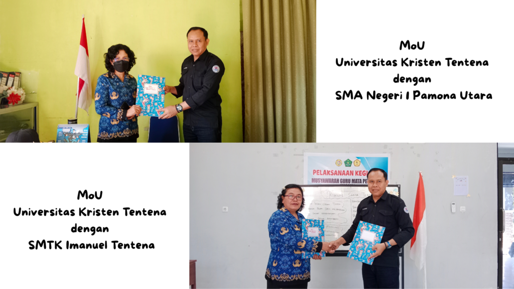 Sebagai tindak lanjut dari kegiatan sosialisasi, Universitas Kristen Tentena melaksanakan penandatanganan Memorandum of Understanding (MoU) dengan SMA Negeri 1 Pamona Utara dan SMTK Imanuel Tentena.